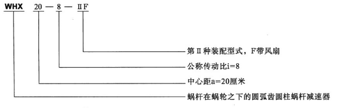 減速機型號中的“W、H、T、X、S、C”分別為“蝸、弧、通、下、上、側”的漢語拼音字頭組合為
